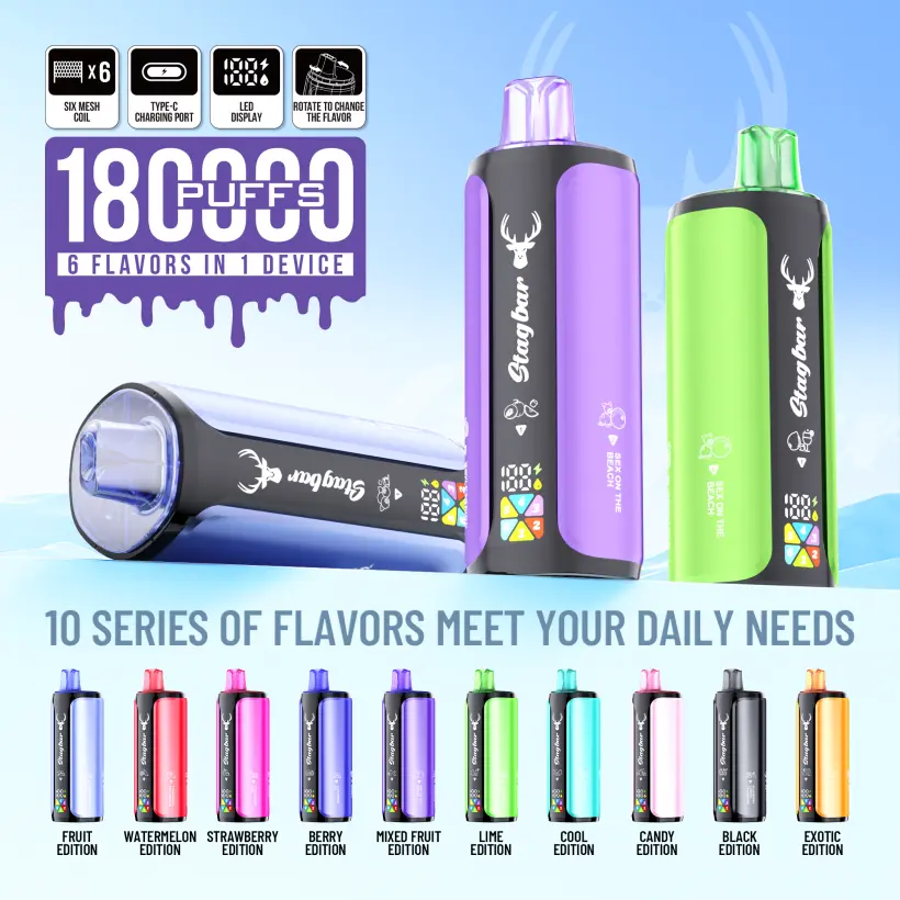 Entrepôt UE Stagbar 180k Puffs Vape Jetable 4 en 1 Vente en Gros Livraison Gratuite