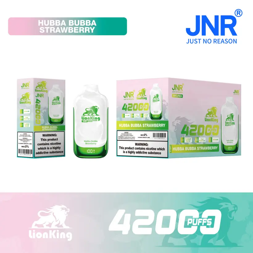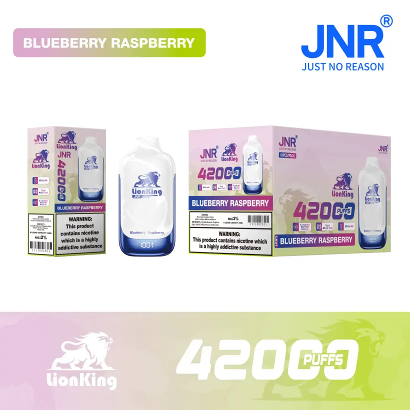 Puff JNR 42K Lion King 42000 Puffs Stylo Vape Jetable offre jusqu’à 42000 bouffées grâce à une batterie de 850mAh et une résistance mesh fluide pour une vapeur riche et savoureuse. Doté d’un écran intelligent pour un contrôle facile, d’une charge Type C et de 10 saveurs délicieuses. Idéal pour la vente en gros ou au détail avec emballage en vrac 10pcs/boîte 200pcs/carton et livraison gratuite depuis l’entrepôt UE.