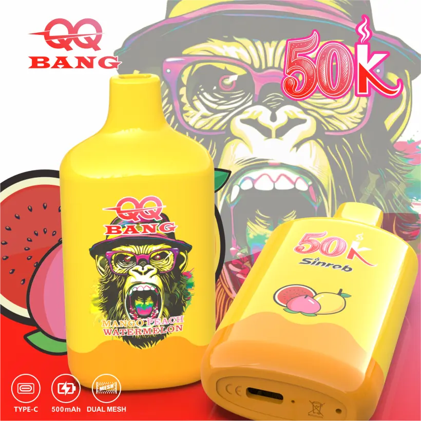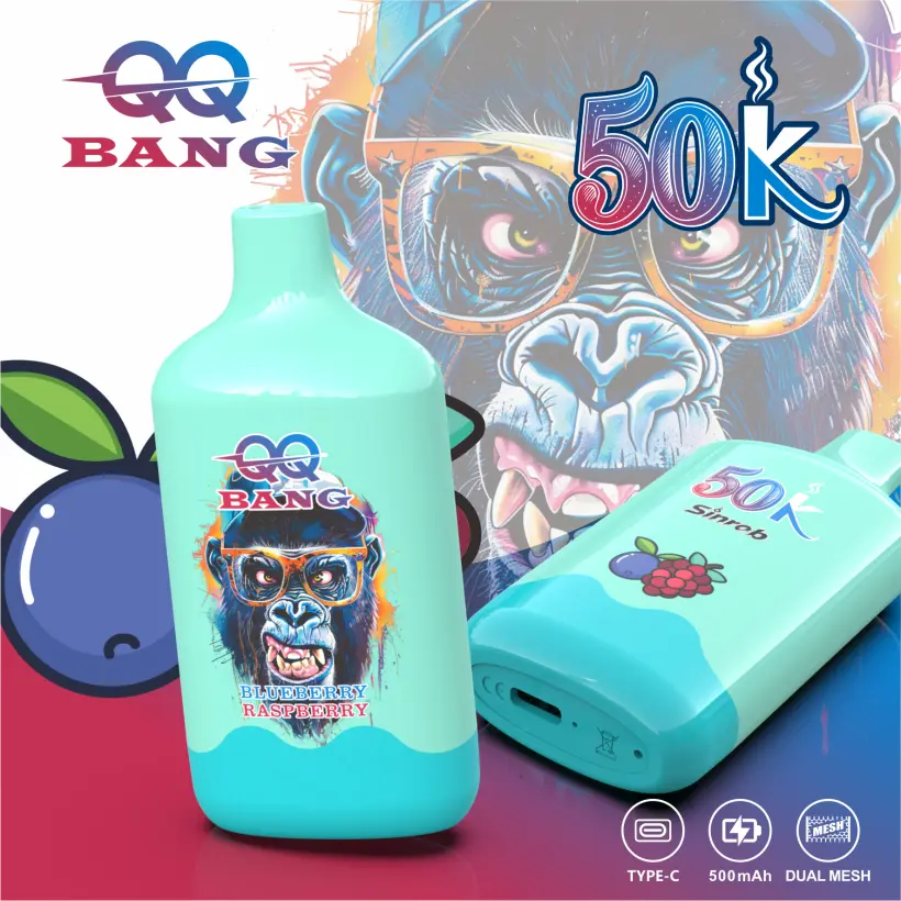 QQ Bang 50000 Puffs Vape Jetable avec 12 Saveurs, Batterie 500mAh, Dual Mesh Coil, Chargement Type-C. Vente en Gros 10 pcs/Boîte, Prix Bas, Livraison Gratuite.